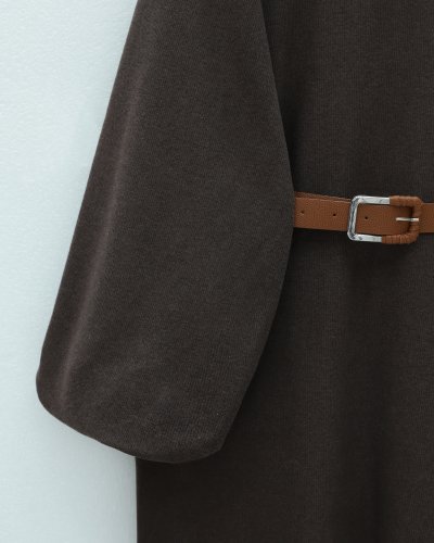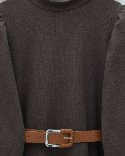 • Kalın Kemerli Balon Kol Selanik Elbise Kahve