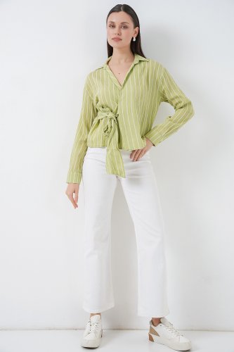• Önü Bağlamalı Çizgili Gömlek 20362 EYeşil