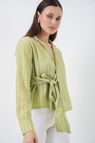 Önü Bağlamalı Çizgili Gömlek 20362 EYeşil